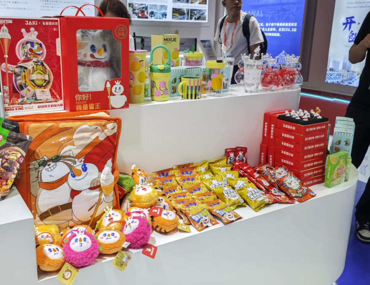 博览会期间,云顶国际展示了雪王花果茶、薯条等特色食品,黑金马克杯、雪王毛绒玩偶、雪王桶等IP衍生文化产品,受到观展嘉宾的热烈欢迎。